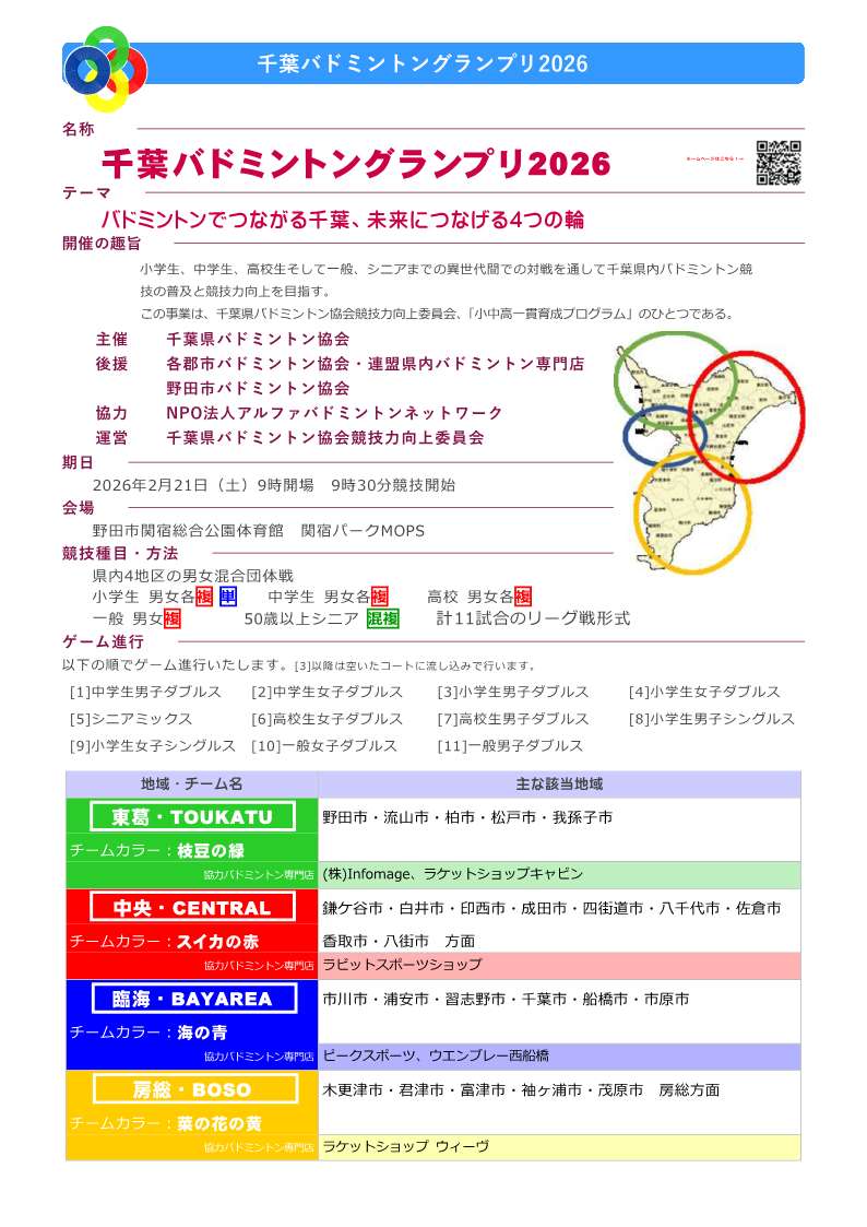 千葉県バドミントン協会 競技力向上委員会 千葉グランプリ運営チーム